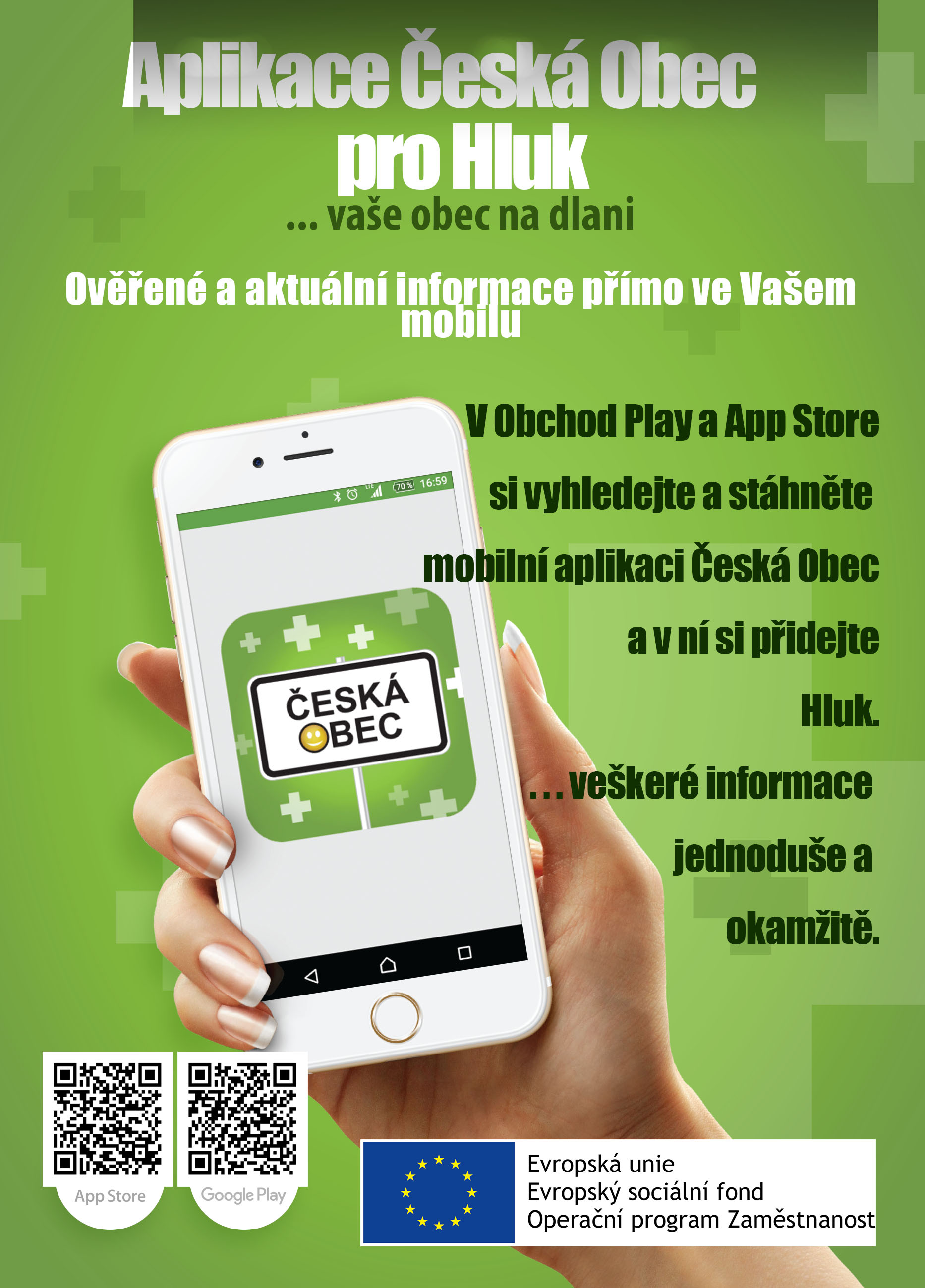 Jak jste byli doposud zvyklí dostávat informace z vaší radnice? V místním tisku, ve vaší obci, e-mailem, nebo jste prostě ve své volné chvíli navštívili webové stránky a posléze se dověděli, že se např. událo něco, co jste potřebovali vědět o dvě hodiny dříve, nebo si případně potřebujete nové informace poznamenat do svého kalendáře, abyste na ně nezapomněli. A právě mobilní aplikace Česká Obec, kterou nejen město Hluk využívá a je přímo propojena s vaší radnicí, která vás tak může o dění ve vašem městě informovat okamžitě. Aplikace navíc pracuje s obrázky, videi, textem, externími odkazy, najdete zde důležité kontakty na vaše město a zároveň aplikace pracuje i s kalendářem ve vašem mobilním telefonu, takže si např. upoutávky na kulturní akce v městě můžete do kalendáře přímo ukládat.