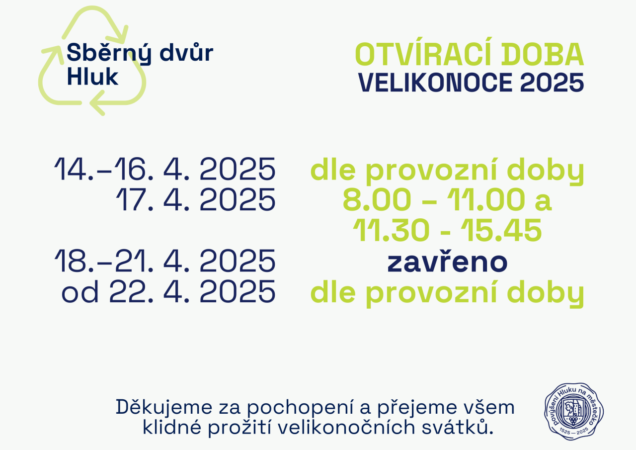VELIKONOCE SE BLÍŽÍ A S NIMI I DROBNÁ ÚPRAVA OTVÍRACÍ DOBY NA SBĚRNÉM DVOŘEJak bude otevřený od 14. do 22. dubna se dozvíte v přiloženém letáku.