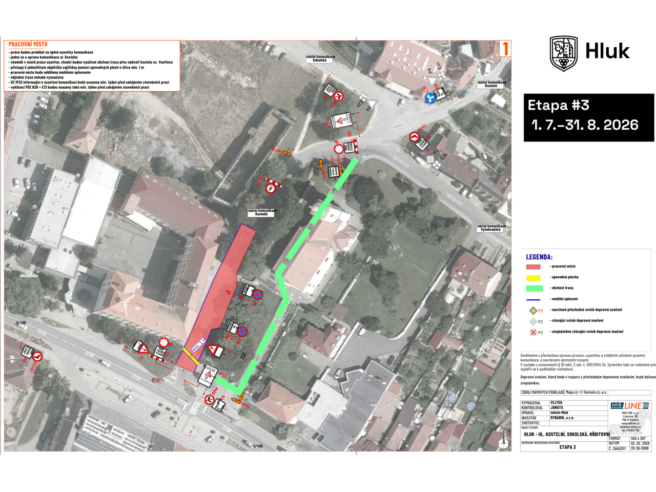 Etapa #2 bude rozdělena na dvě části – ulici Sokolskou před bývalým komunálem a křižovatku ulic Hřbitovní a Sokolská směrem ke hřbitovu. Potrvá od 18. 5. do 31. 7.