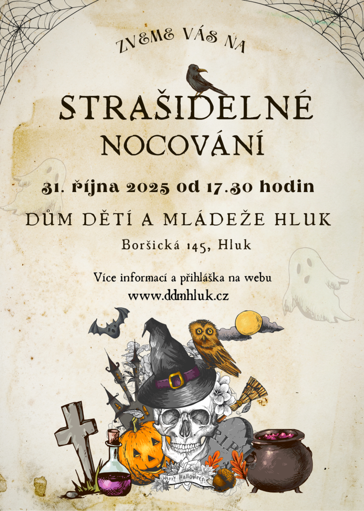 Pro nebojácné děti ve věku 8 - 12 let pořádáme Strašidelné nocování na DDM.