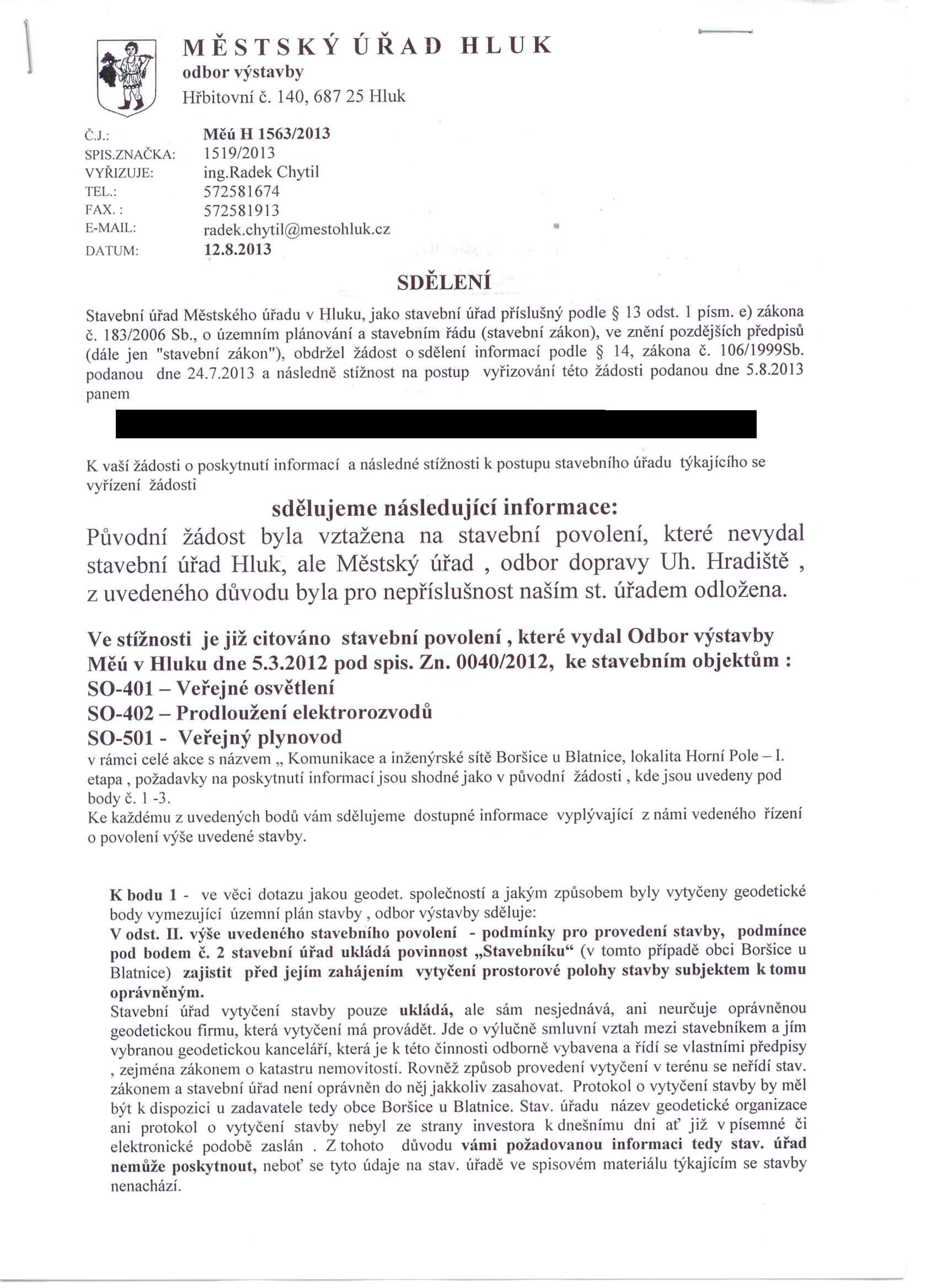 Poskytnutí informací k č.j.1483-2013- sdělení ke stížnosti - list 1.JPG